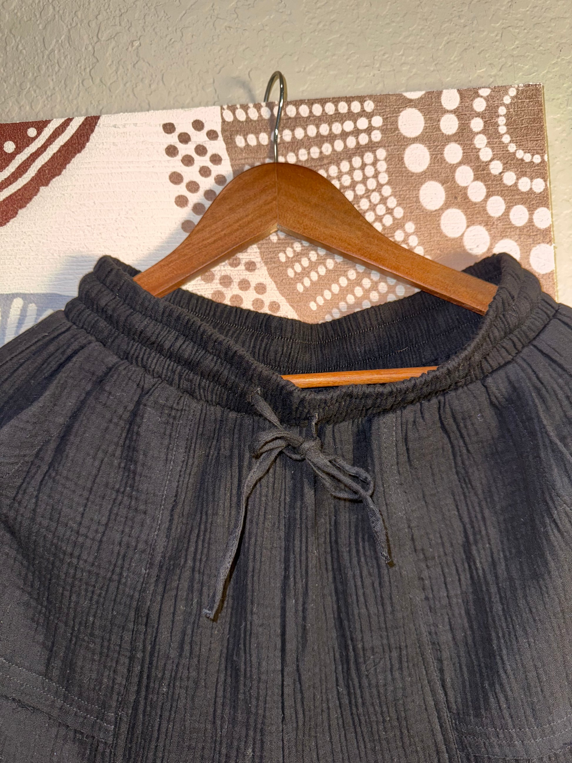 rExpertly crafted for comfort and style, the Amanda Wide Leg Gauze Pants feature a loose-fitting wide leg design and an adjustable hem for a customizable fit. Perfect for all-day wear, these pants provide both functionality and fashion.