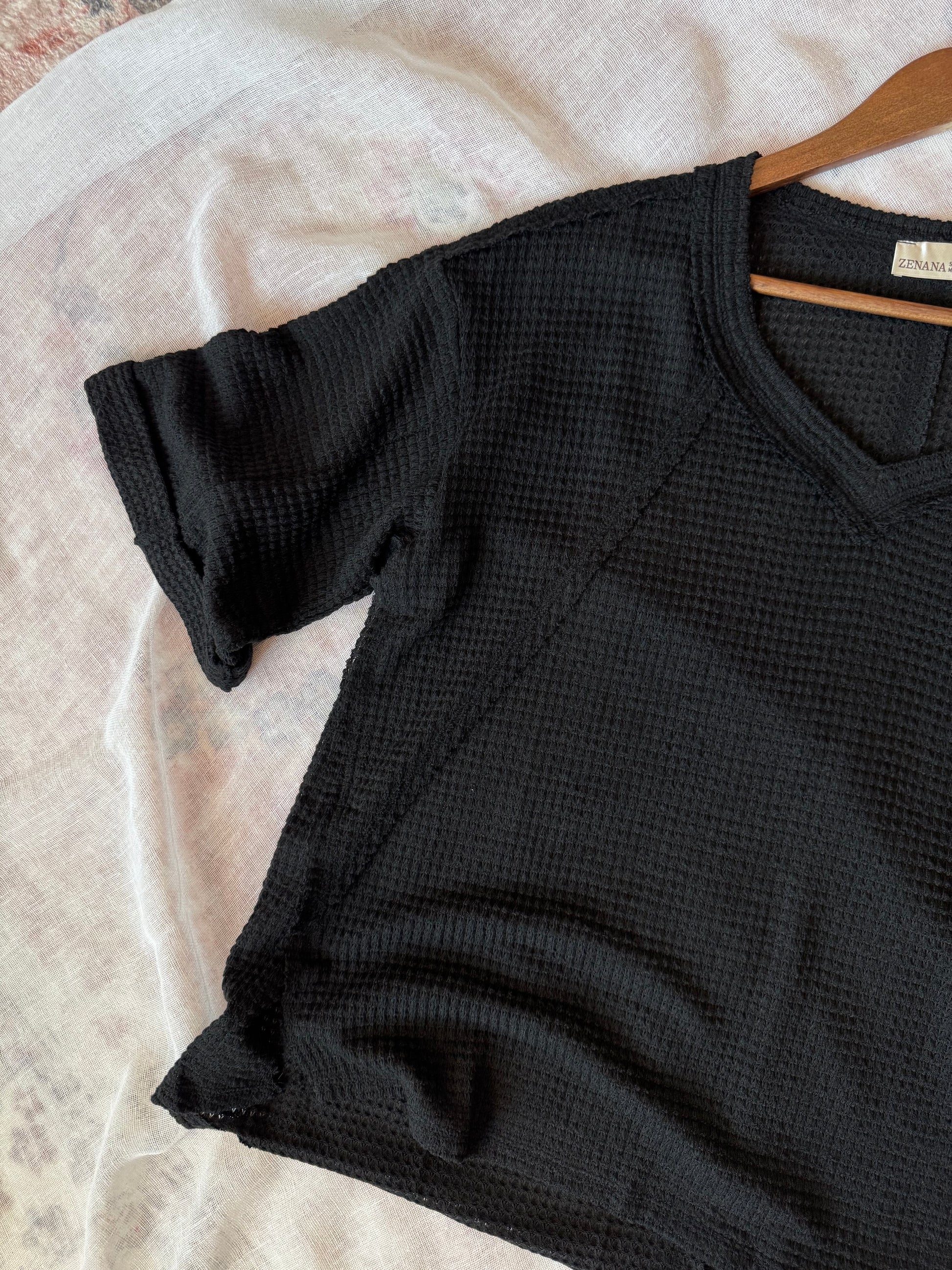 April Breeze Waffle Knit Top *BLACK* (S-XL)