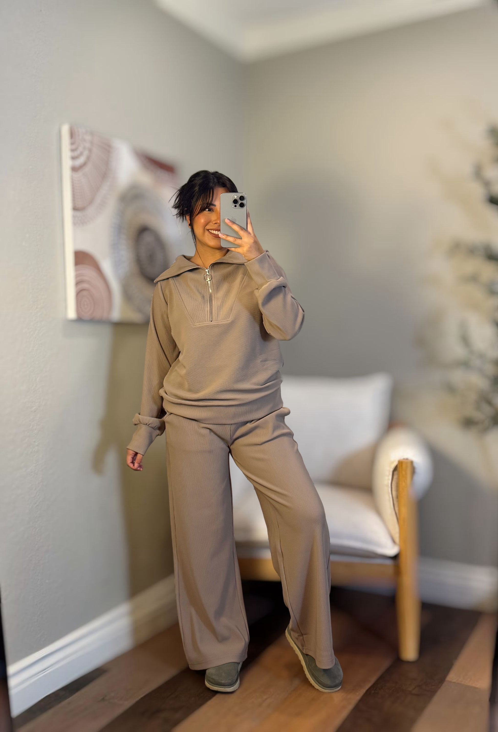 Indulge in luxurious comfort with our Casey Ribbed Long Sleeve Set! The ribbed high neck half zip pullover and pants create a cozy feel, perfect for casual everyday wear.