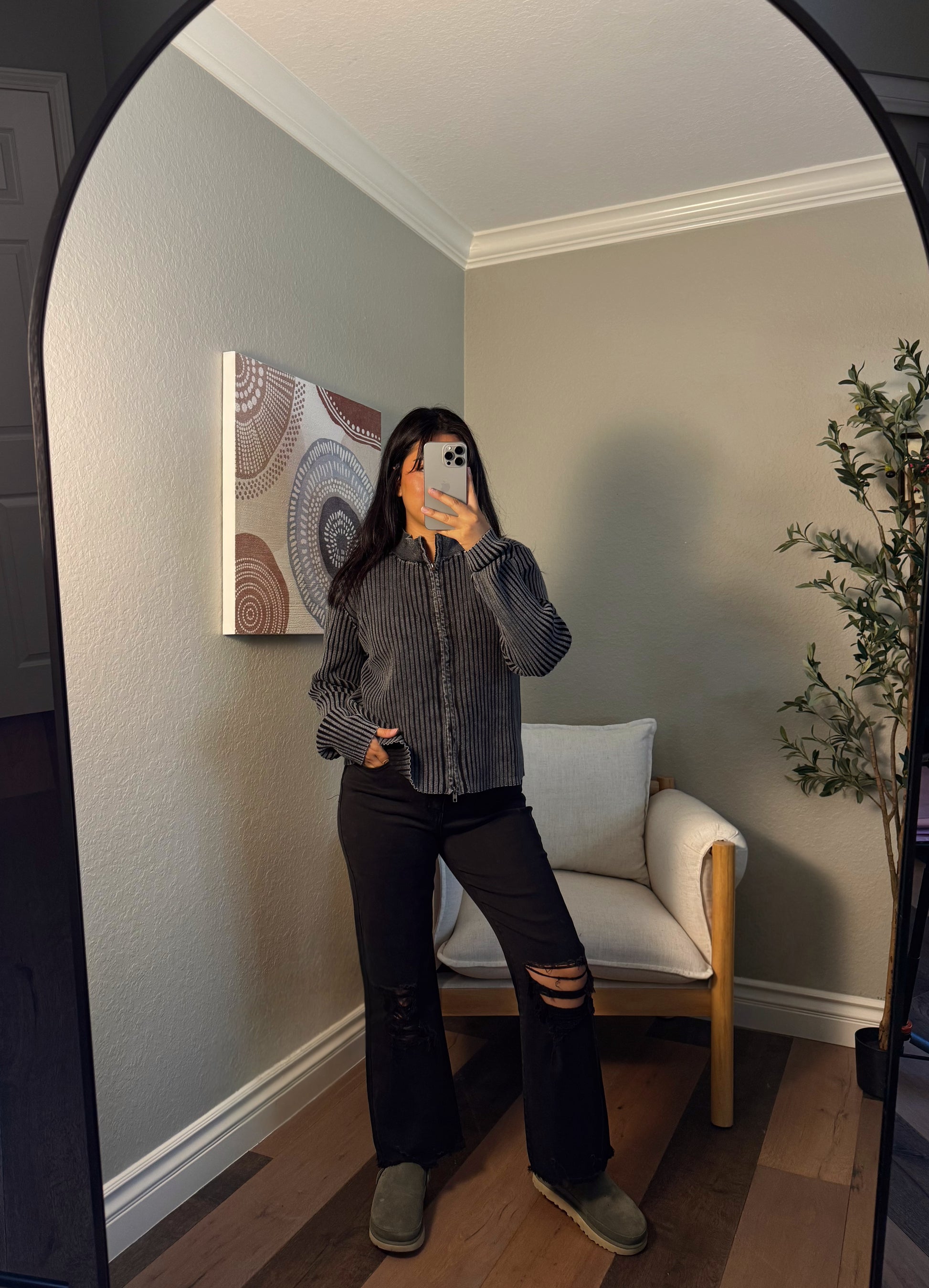 Introducing our High Rise Jeans in classic black! With a high waist for a flattering fit and good stretch for all-day comfort, these jeans are perfect for any occasion. The distressed knee and hem add a touch of edginess to your look. Available now in black.